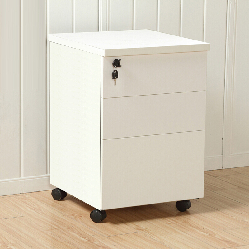 • 移动柜文件柜 40*40*60cm活动柜 储物矮柜 推拉抽屉柜 资料柜 办公柜 带锁三抽柜 带轮小推柜 白色不带拉手