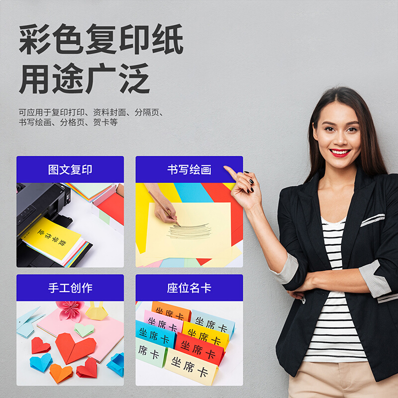 得力(deli)A4深蓝色复印纸 彩色打印纸 儿童手工折纸彩纸 80g卡纸 100张/包 7758