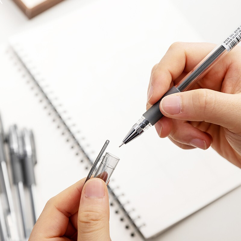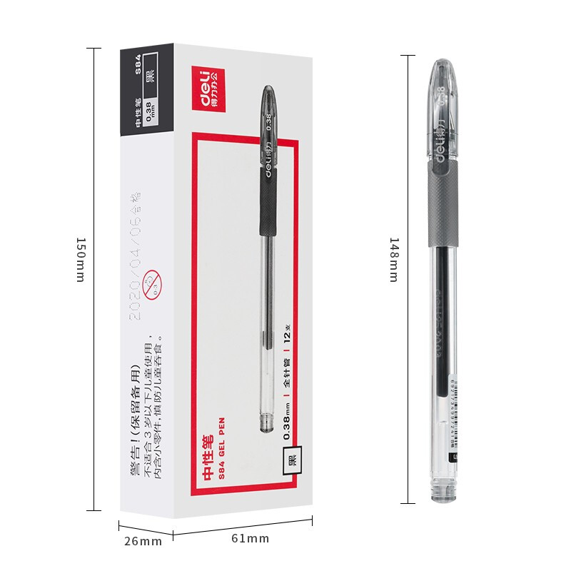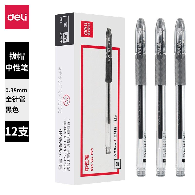 • 得力S84 全针管中性笔0.38mm办公黑笔签字笔 商务办书写顺畅透明简约 黑色/12支
