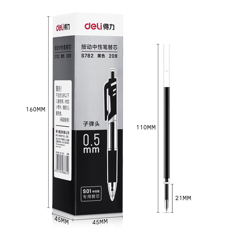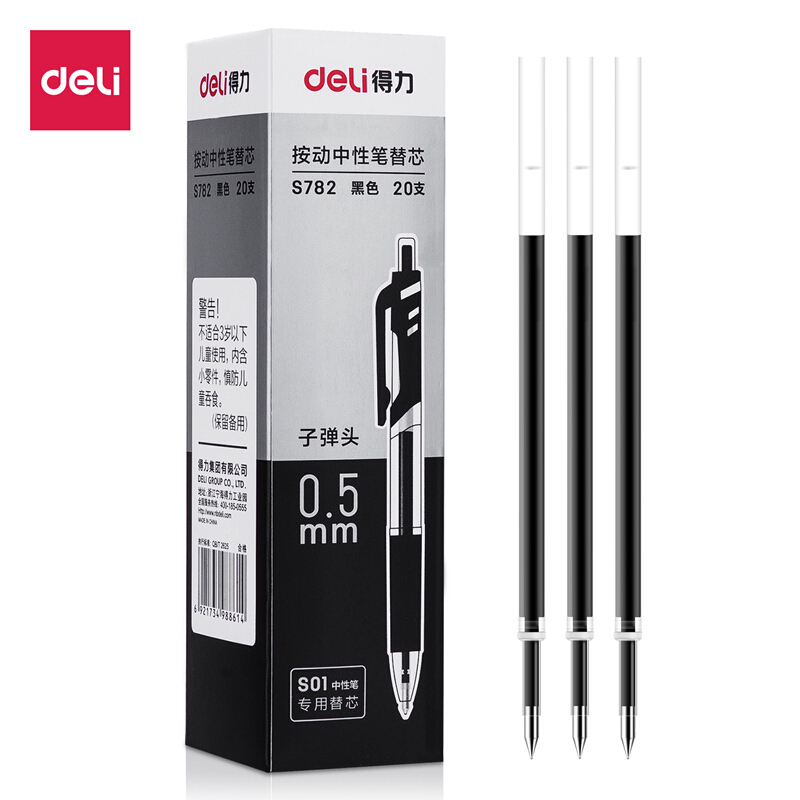 • 得力S01/0.5mm按动中性笔芯 替芯 K35用 黑色子弹头20支/盒