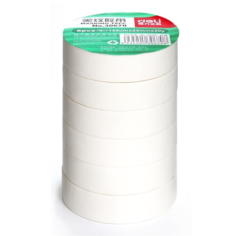 • 得力30670 美纹纸胶带/装修遮蔽带/无痕纸/贴膜 24mm*20y*145um(18.3m/卷) 6卷袋装