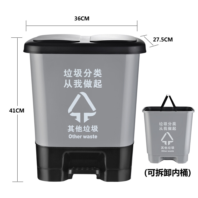 • 白云分类垃圾桶大号脚踩脚踏式户外环卫带盖商用厨房回收 灰色 27L-其他垃圾
