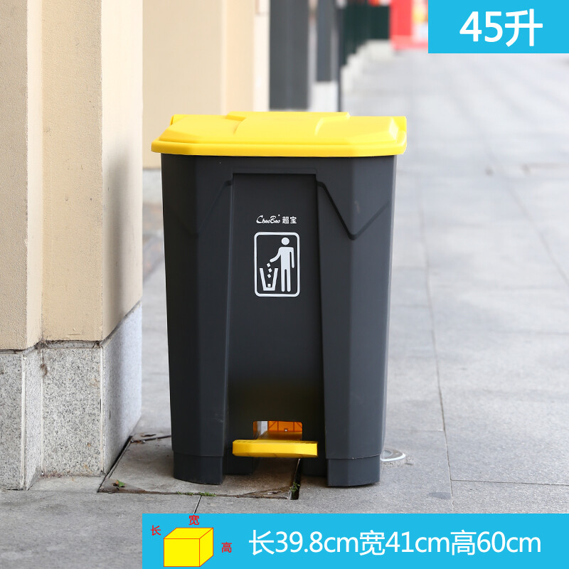 白云分类垃圾桶大号脚踩脚踏式户外环卫带盖商用厨房回收 45L防老化特厚型-黄灰色(白云牌)