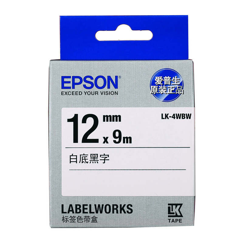 - 爱普生 LK-4WBW 强粘标签色带 12mm 白底黑字 (LW-K400L/LW-600P/LW-700/LW-1000P/LW-Z700/LW-Z900)
