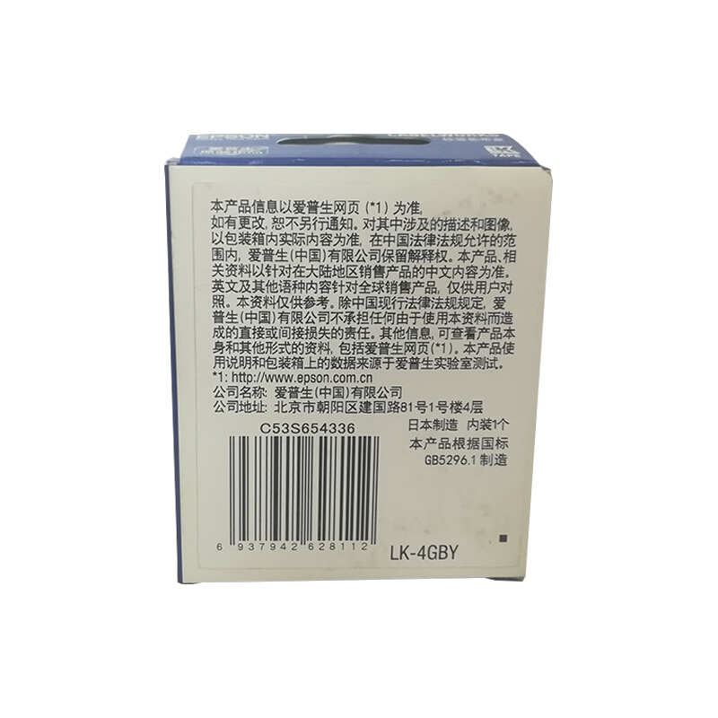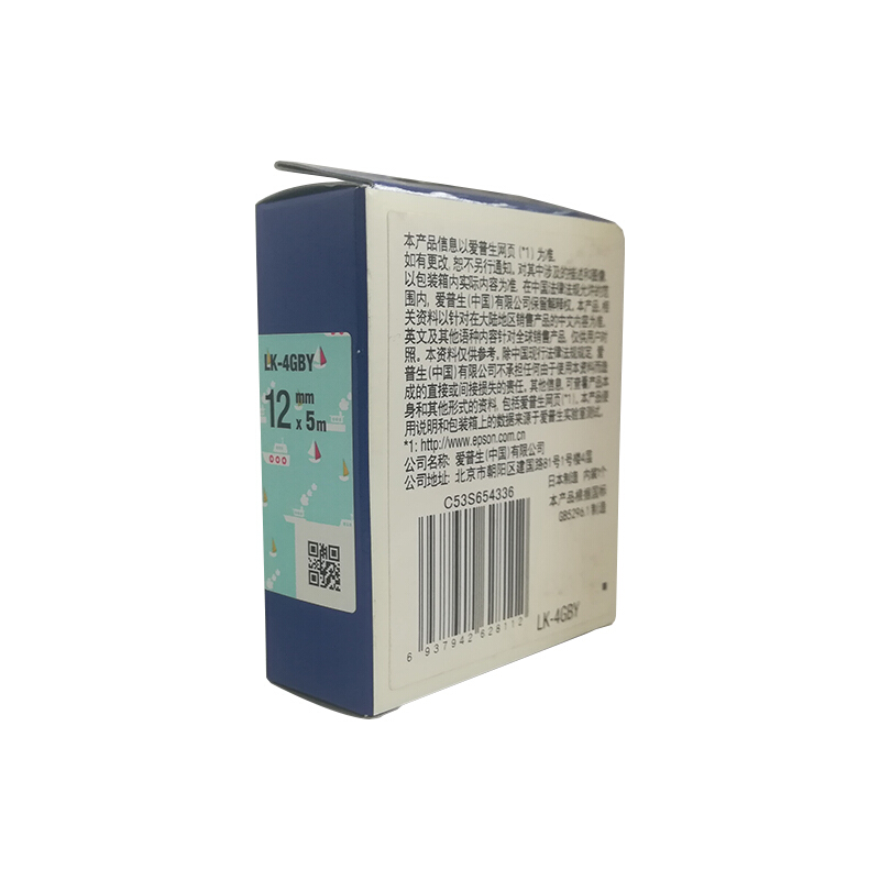 爱普生(EPSON)LK-4GBY 标签机色带 12mm 海洋蓝小船底 (LW-K400L/LW-600P/LW-C410)