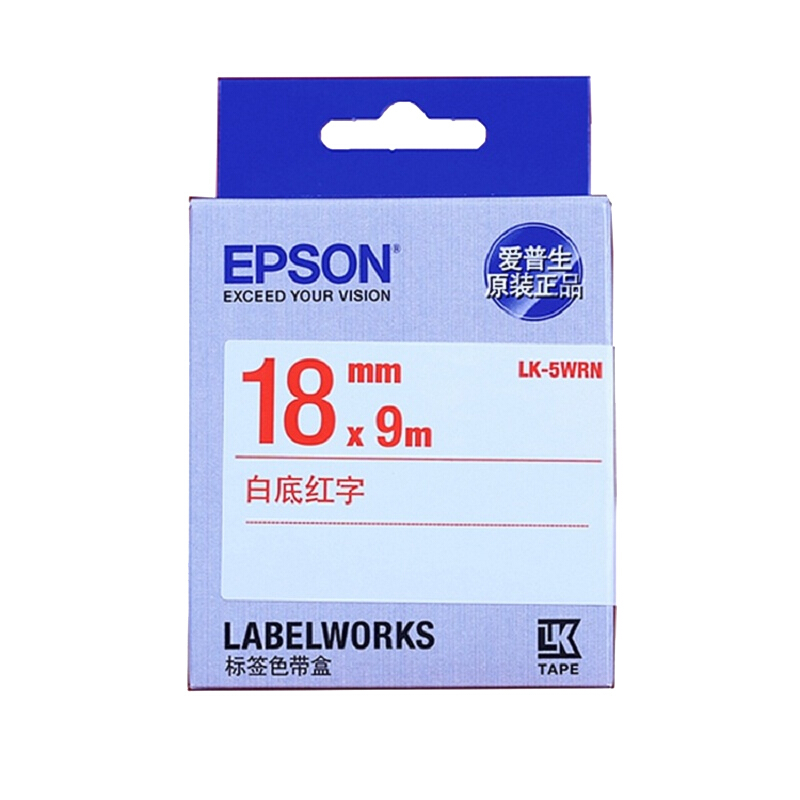爱普生(EPSON)LK-5WRN标签机色带 18mm 红字白底 (LW-K400L/LW-600P/LW-C410)