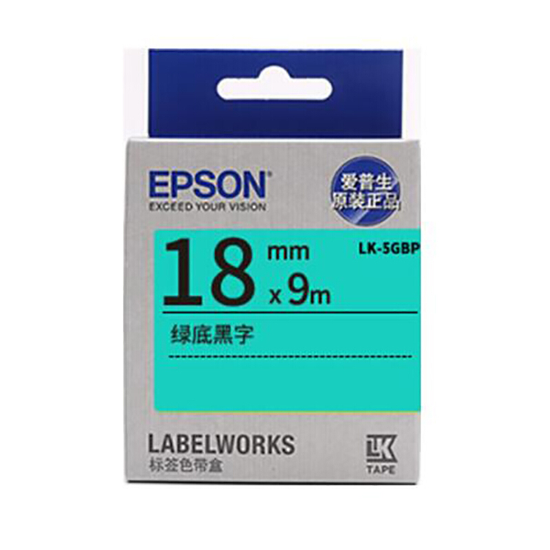 - 爱普生 LK-5GBP 标签机色带 18mm 绿底黑字 (LW-K400L/LW-600P/LW-700/LW-1000P/LW-Z700/LW-Z900)