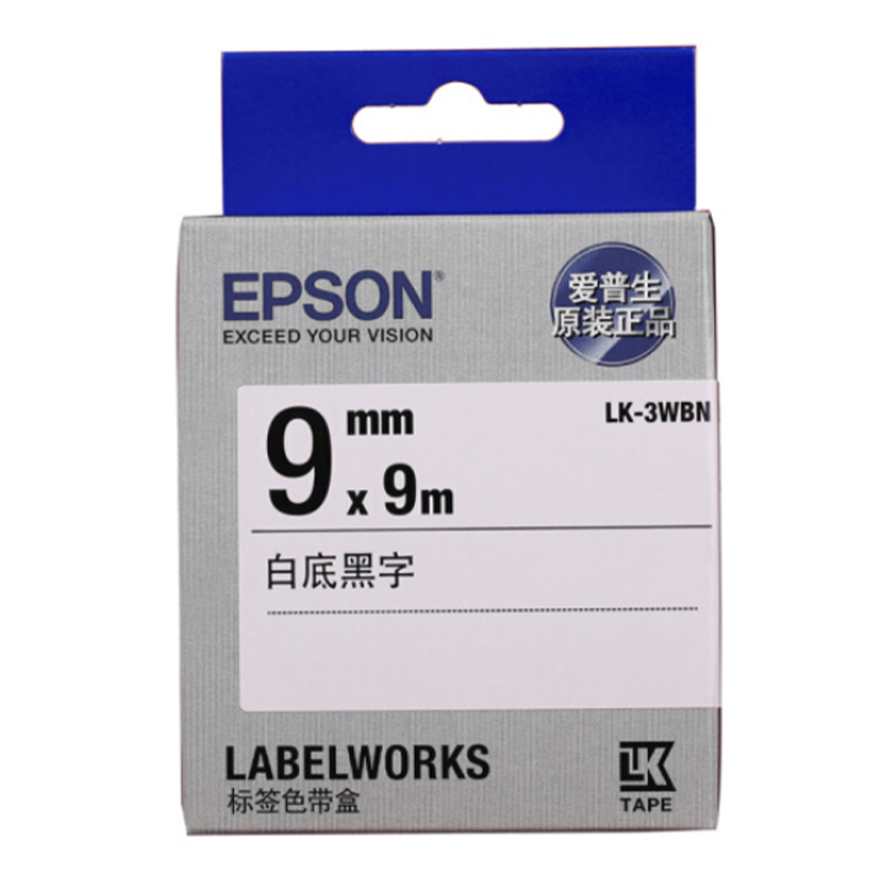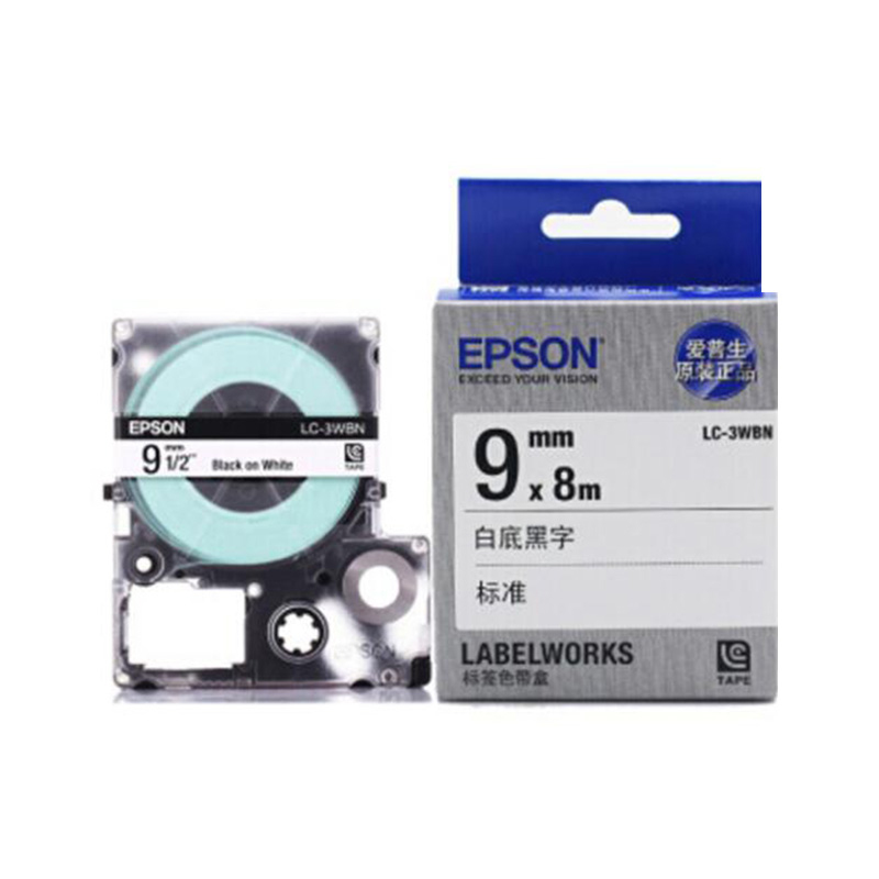- 爱普生 LK-3WBN 标签机色带 9mm 白底黑字 (LW-K400L/LW-600P/LW-700/LW-1000P/LW-Z700/LW-Z900)