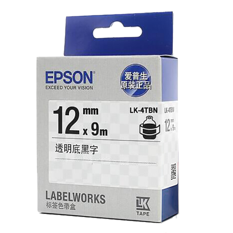 - 爱普生 LK-4TBN 标签机色带 12mm 透明底黑字 (LW-K400L/LW-600P/LW-700/LW-1000P/LW-Z700/LW-Z900)