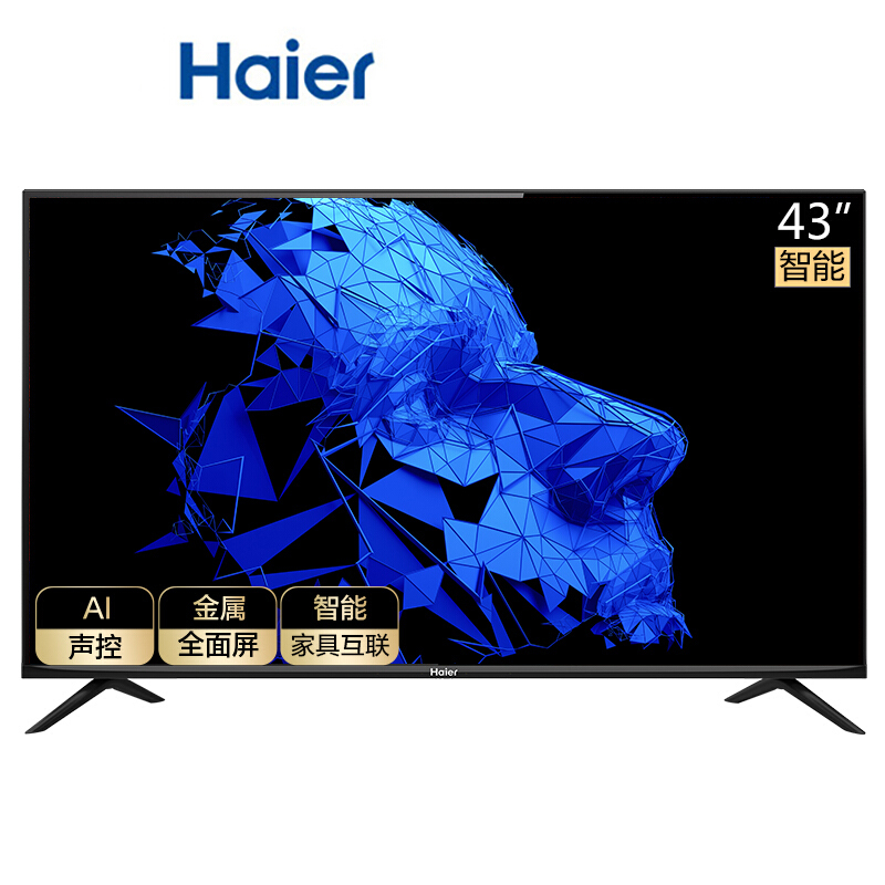 • 海尔 (Haier) 43R3 43英寸超薄金属全面屏 全高清 AI声控智慧屏 平板液晶教育电视2+16G