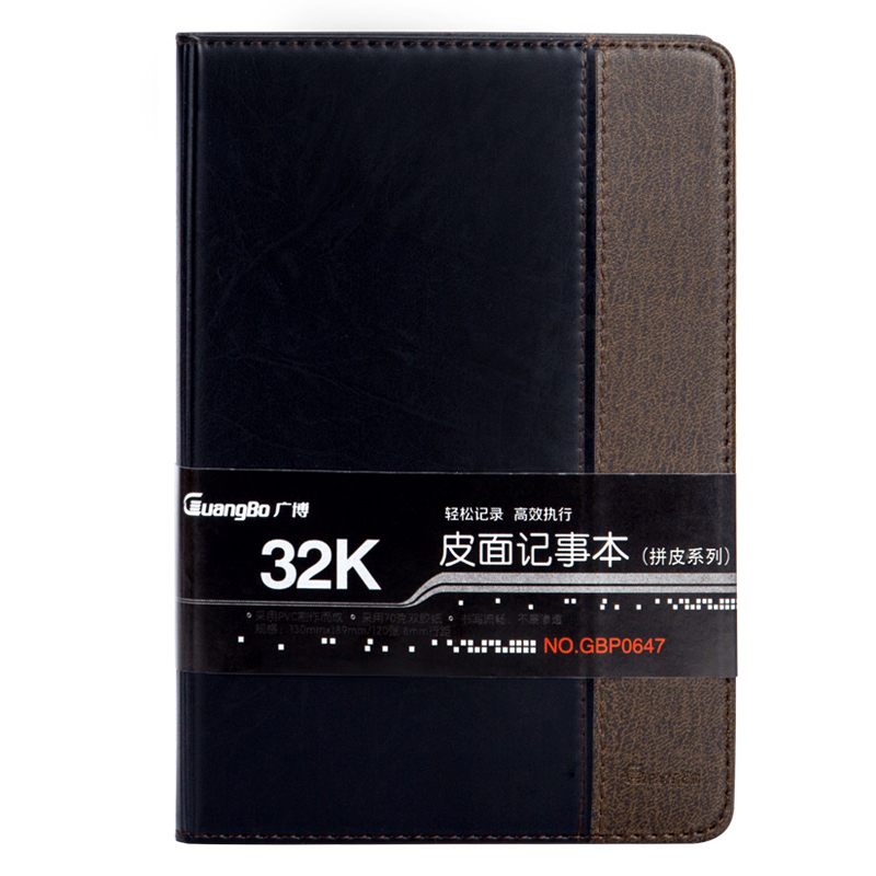 • 广博GBP0647 32K120张拼皮商务皮面记事本子文具笔记本记事薄 棕黑