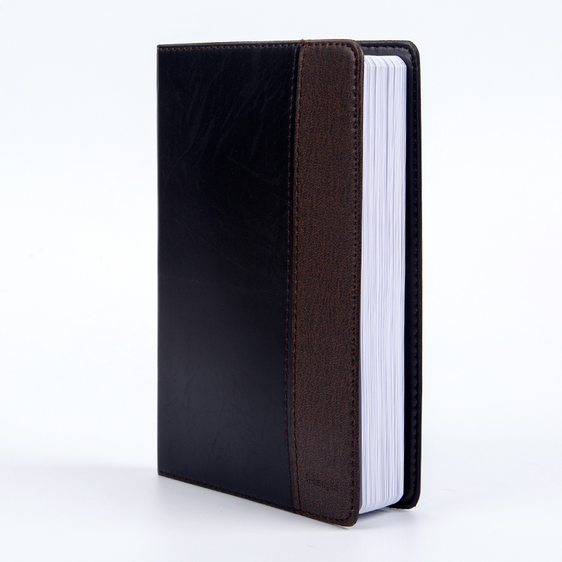 广博GBP0647 32K120张拼皮商务皮面记事本子文具笔记本记事薄 棕黑