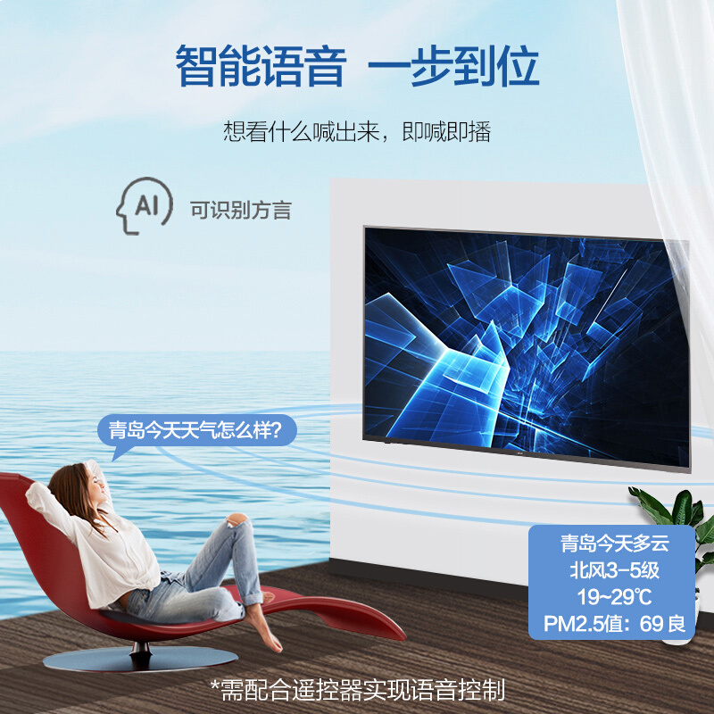 • 海尔(Haier)LU75C51 75英寸4K超高清 人工智能 语音遥控 超窄边框LED液晶电视2+16G (枪灰色)