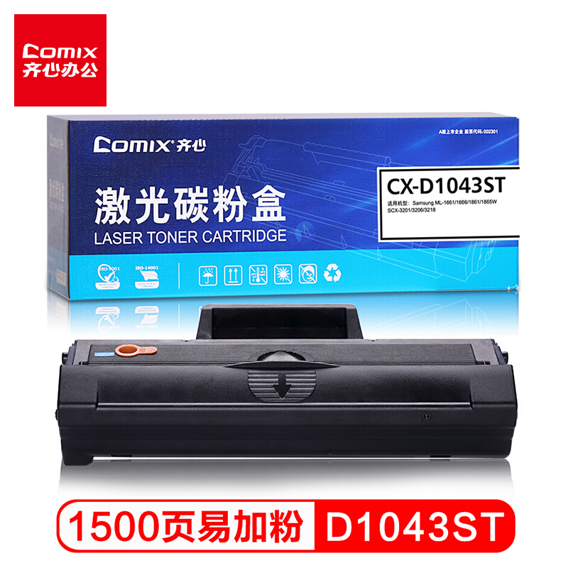 - 齐心CX-D1043ST 黑色易加粉硒鼓 适用三星ML-1666 1676 1861 SCX-3201 3200 3202 3206W 3218
