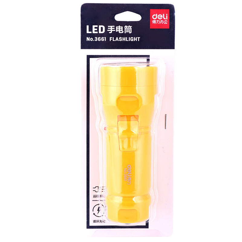 • 得力3661 充电式LED可调光手电筒 户外家用手电筒 橙黄色