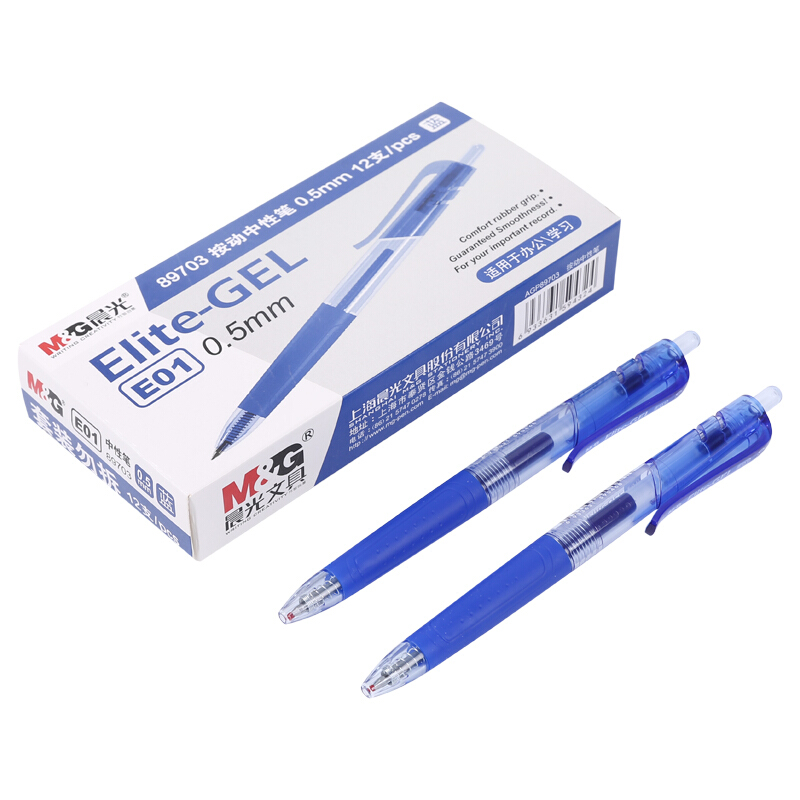 晨光AGP89703 0.5mm蓝色中性笔 精英系列E01签字笔 按动子弹头水笔 12支/盒
