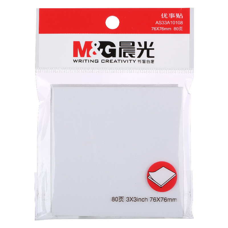 晨光YS-45 白色80页便利贴 粘性标签贴留言贴 76*76mm记事贴优事贴便签本子 单本装