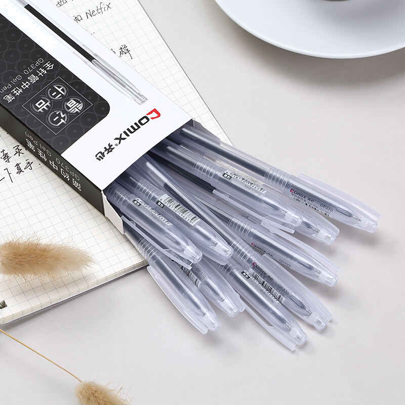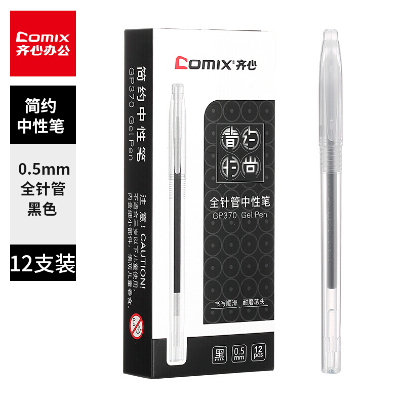 齐心(Comix)0.5mm全针管笔头简约黑色中性笔/水笔/签字笔 12支/盒 GP370