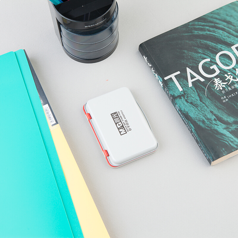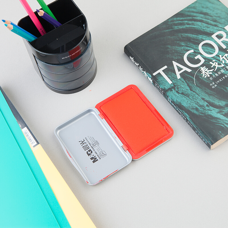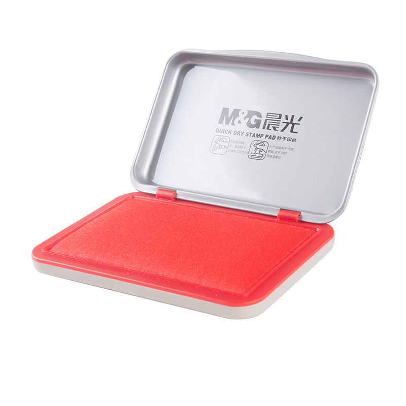 • 晨光 AYZ97517文具红色财务专用秒干印台 120*80mm方形金属印泥印台 单个装