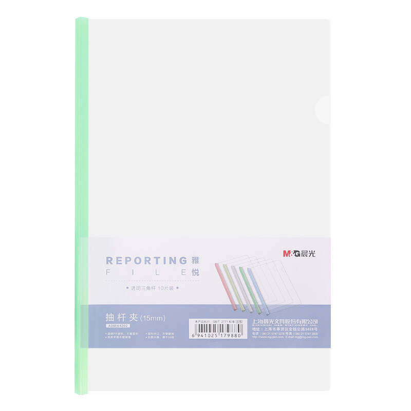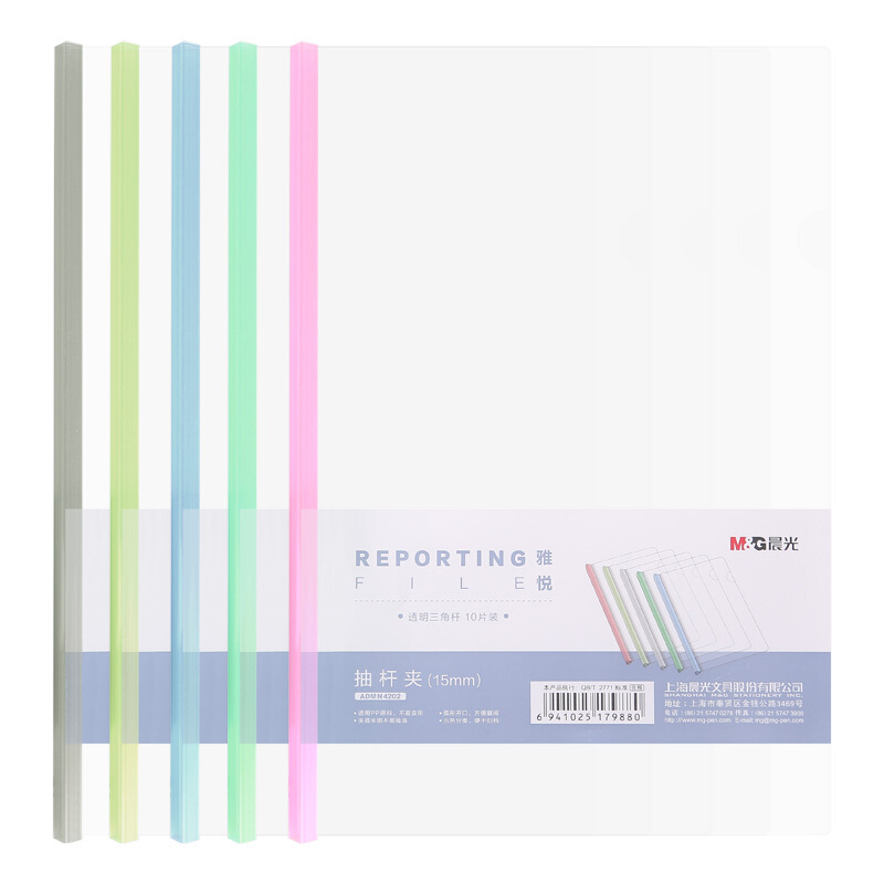• 晨光 ADMN4202文具10个装A4/15mm透明彩色抽杆夹 办公报告夹拉杆夹 雅悦系列资料整理收纳文件夹