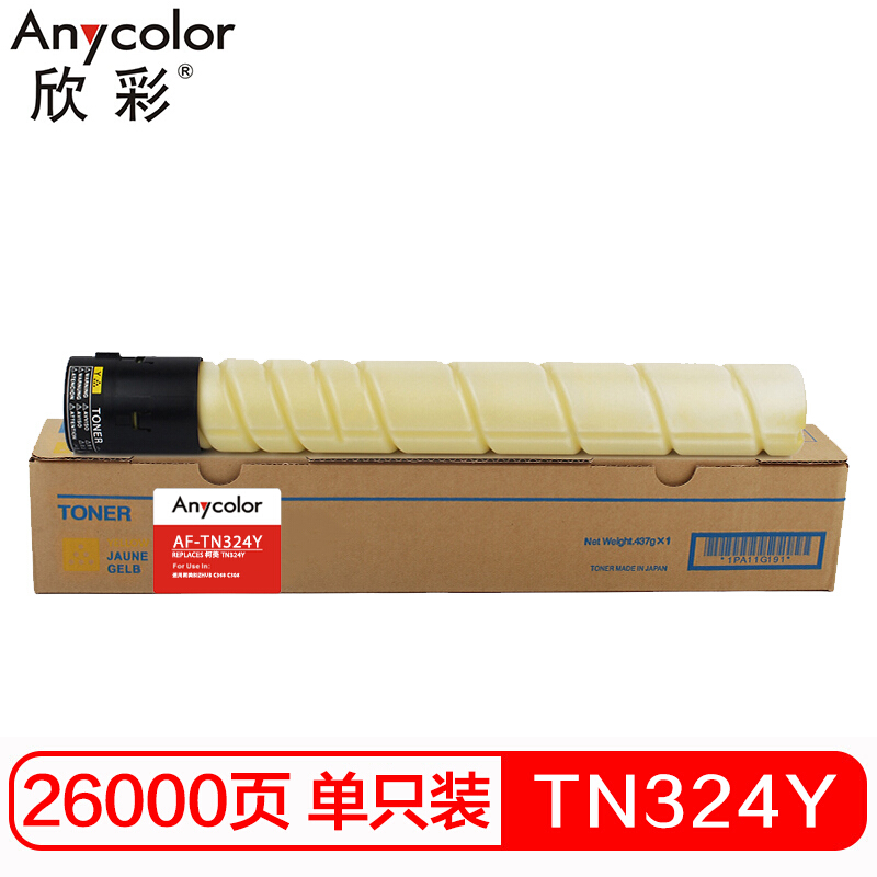 欣彩 TN-324 黄色墨粉 适用柯尼卡美能达 bizhub C454 C308 C258 C368 复印机碳粉