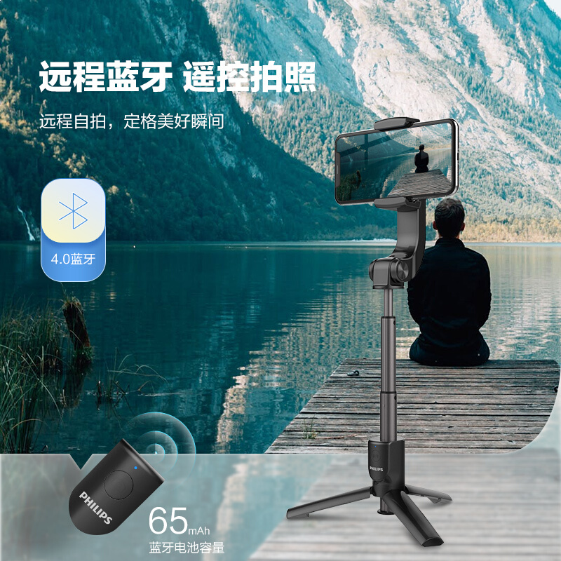 • 飞利浦DLK3619N 手机稳定器 防抖手持云台 手机三脚架自拍杆 无线蓝牙可折叠便携多功能一体直播支架