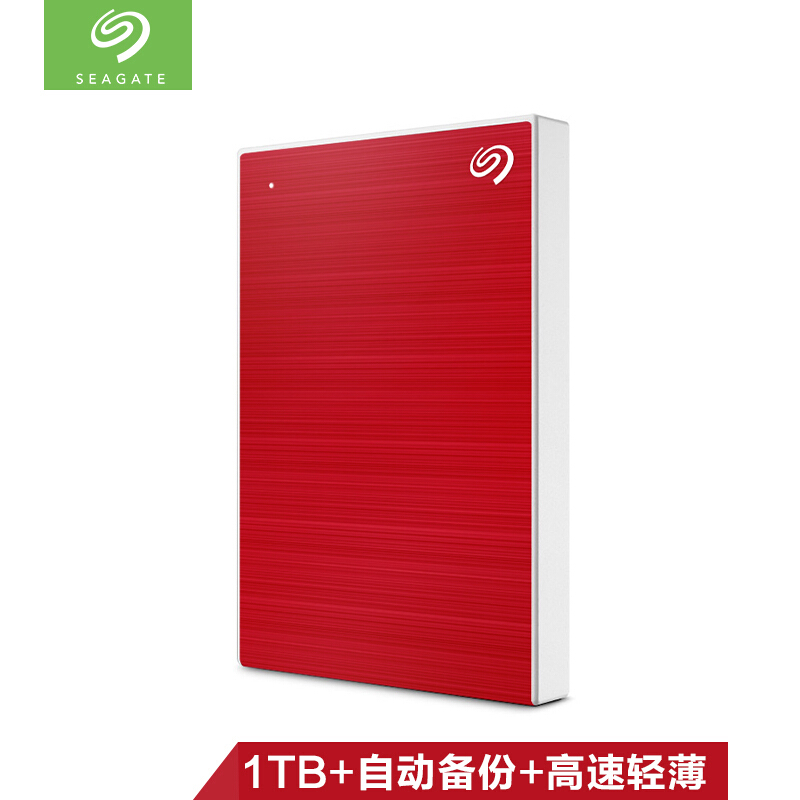 希捷(Seagate)1TB USB3.0移动硬盘 新睿品铭系列 2.5英寸 (轻薄小巧 自动备份 金属拉丝) 挚爱红