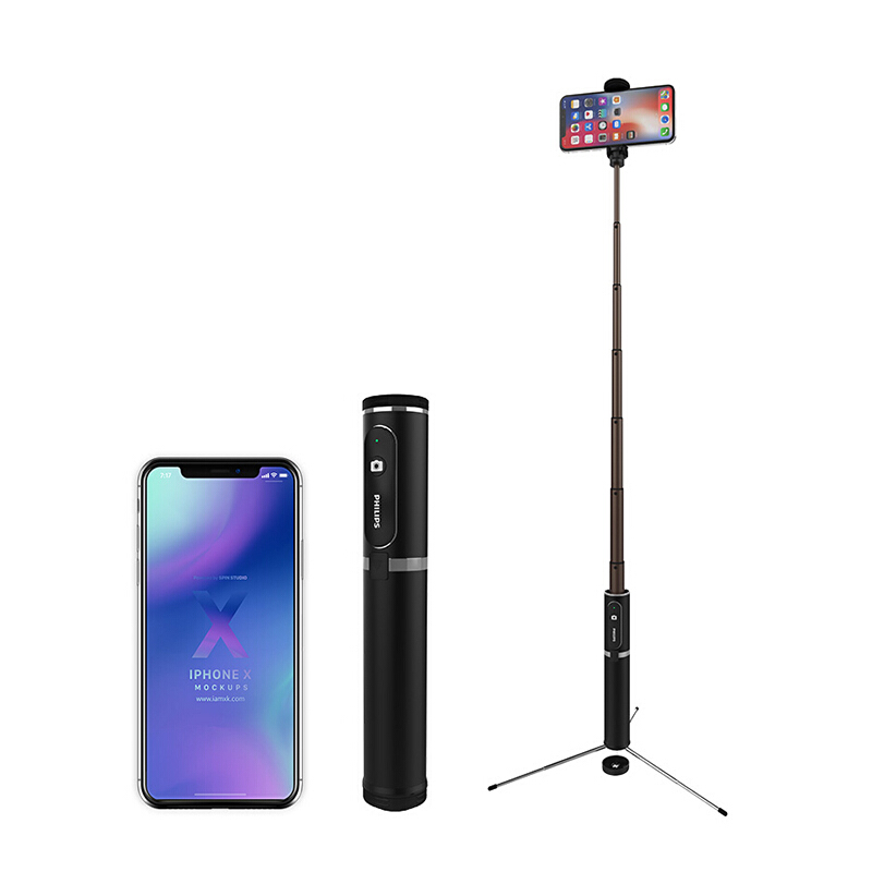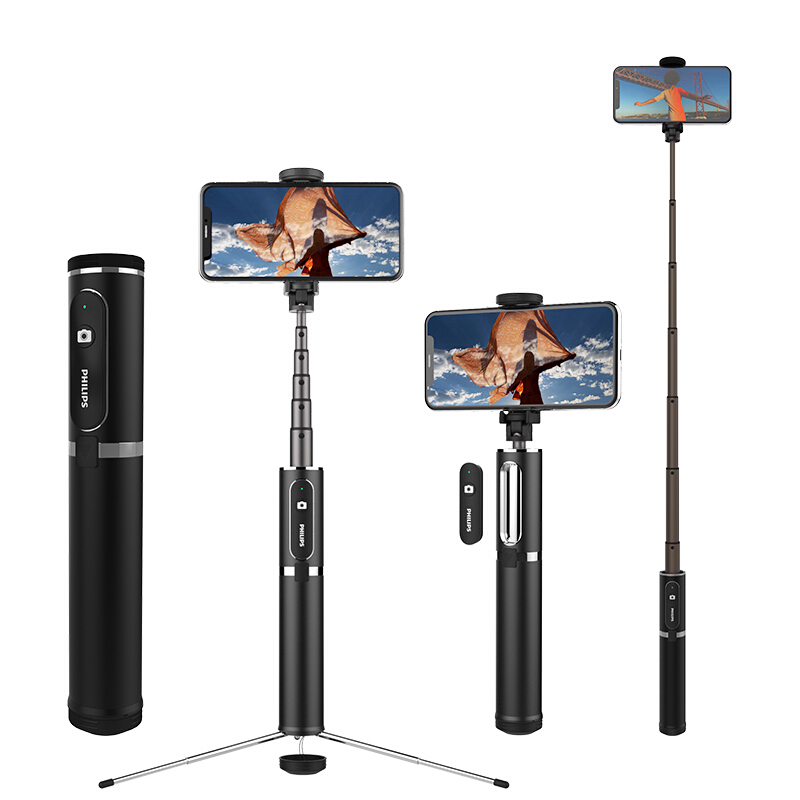• 飞利浦三脚架无线自拍杆 蓝牙遥控 小巧便携 短视频/直播支架360°旋转 安卓/苹果手机通用 DLK3616N