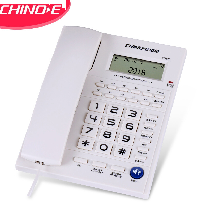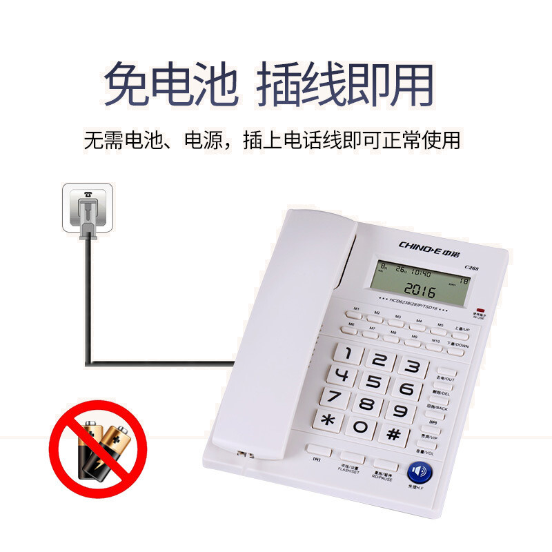 中诺C268 电话机 座机 固定 电话 有线 来电显示 一键拨号 免电池 双接口 白色
