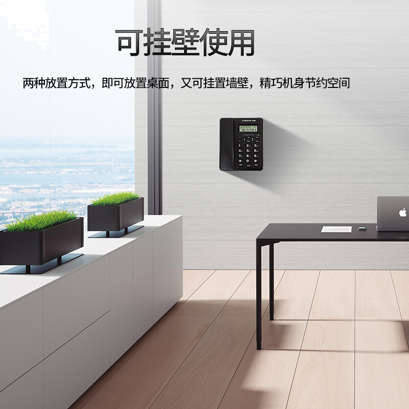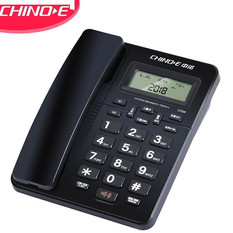 中诺 电话机 座机 固定 电话 有线 来电显示 一键拨号 双接口 免电池 C258黑色