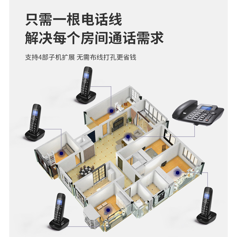 • 中诺 W128无绳电话机 无线座机 子母机内线通话 一键拨号 免提通话一拖三 白色