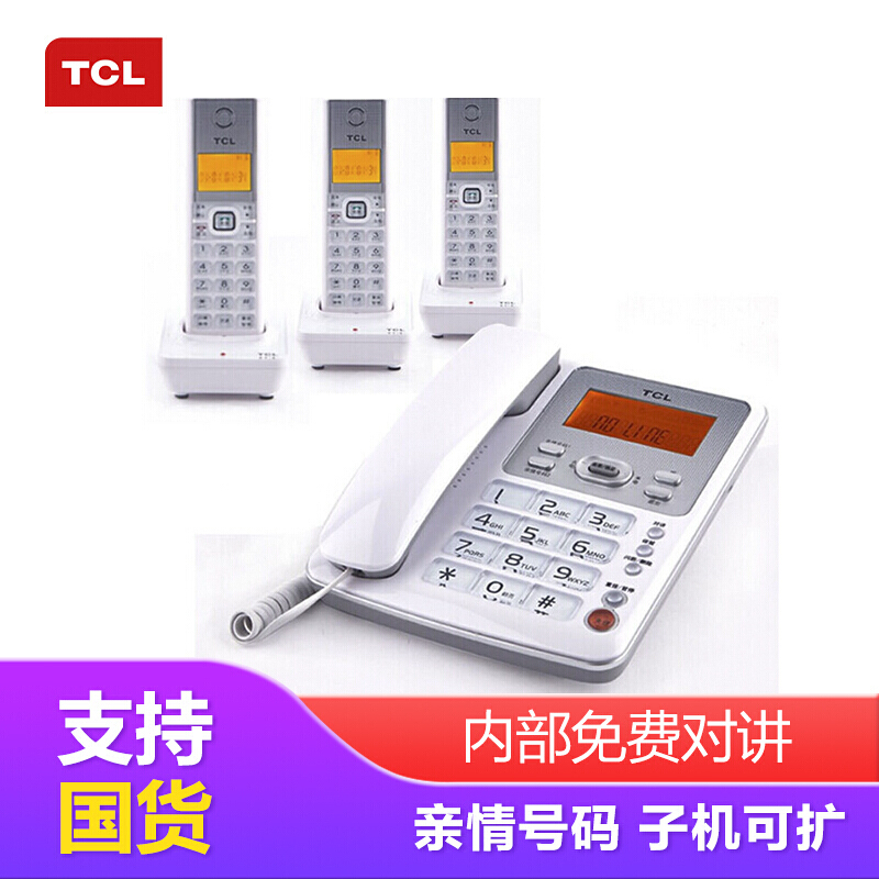 TCL 无绳电话机 无线座机 子母机 办公家用 大按键 信号强 抗干扰 D60套装一拖三(白色)