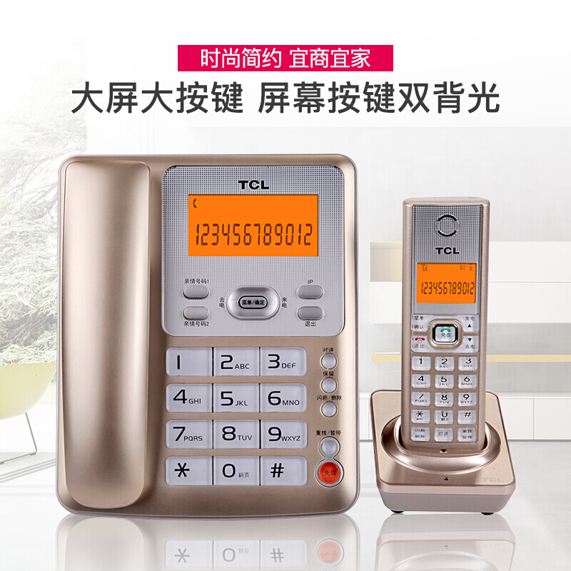 • TCL D60 无绳电话机 无线座机 子母机 办公家用 大按键 信号强 抗干扰 套装一拖三(白色)