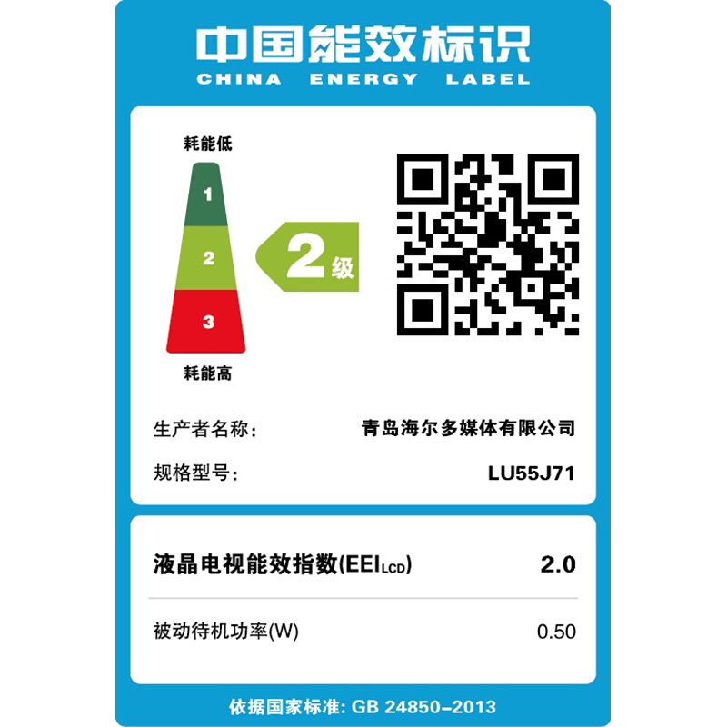 海尔LU55J71 55英寸 超清8K解码 人工智能全面屏 纳米广色域 语音遥控 LED液晶电视2+16G(黑色)