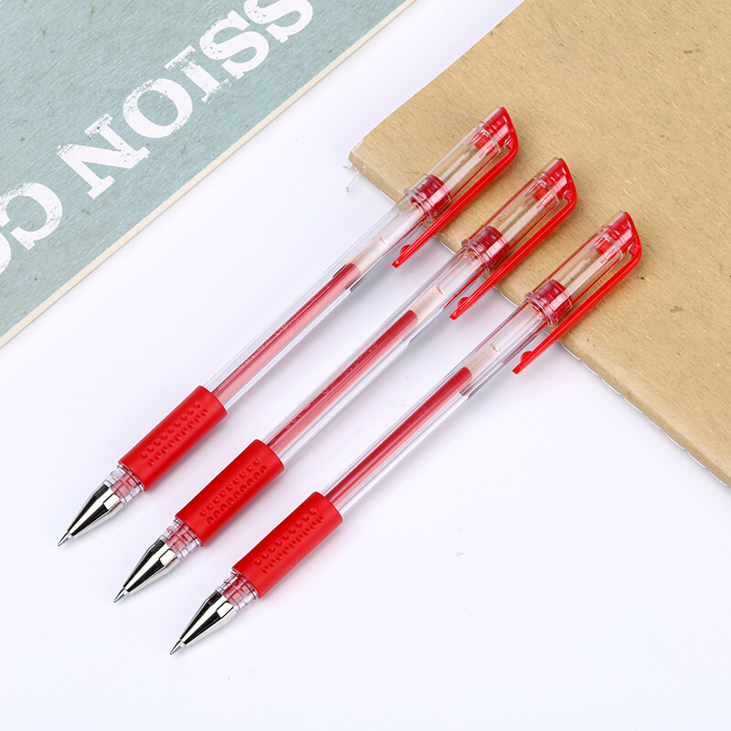 • 得力6600 中性笔签字笔0.5mm经典办公子弹头红色12支/盒