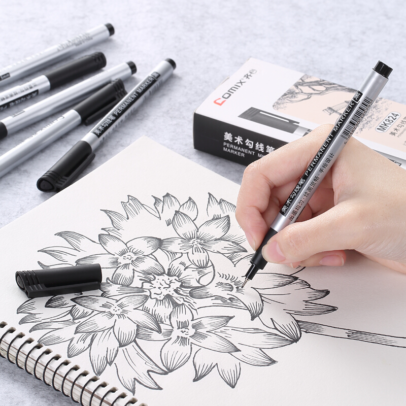 • 齐心MK824 黑色专业美术绘画勾线笔0.5mm签字笔 12支/盒