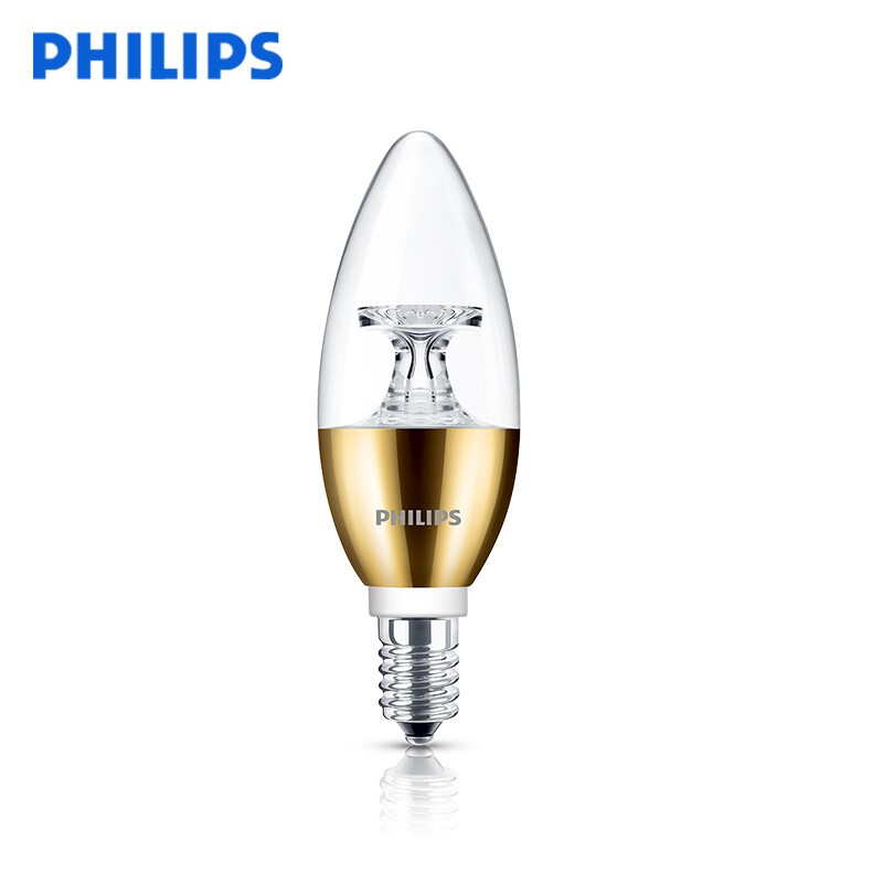 飞利浦照明(PHILIPS)LED灯蜡烛灯尖泡拉尾泡家用暖光小螺口E14 摇曳泡椒泡 尖泡5w-金底黄光-E14螺口