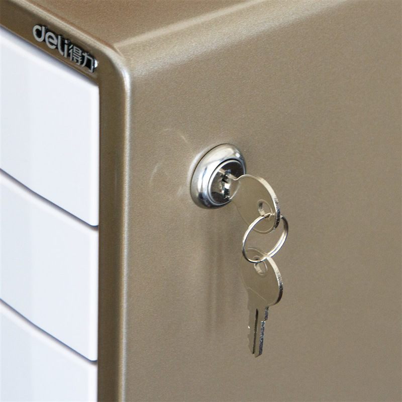 • 得力(deli) 桌面资料整理文件柜 五层带锁塑料抽屉柜 四层硬塑文件盒收纳柜 金属5层文件柜(棕色)9702