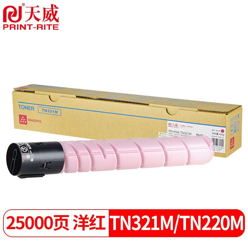 - 天威 TN-321M红色粉盒适用柯尼卡美能达C364 C284 C224 C7822 C7828柯美TN220墨盒C221S C281 C7122 C227碳粉