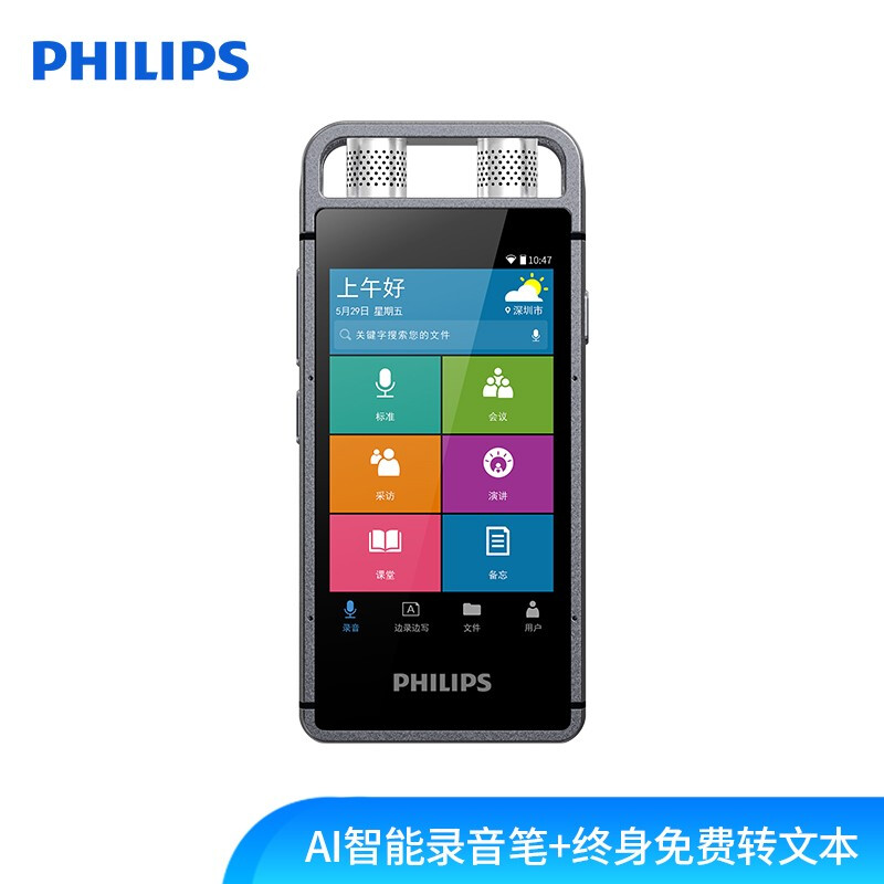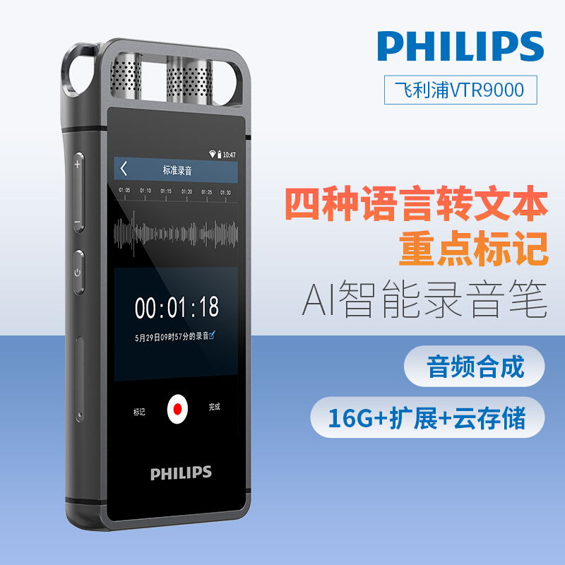 飞利浦(PHILIPS)VTR9000 16G AI智能录音笔 终身免费转文本 录写同步 WIFI 翻译 云空间储存