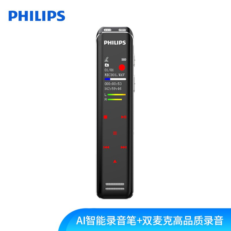 • 飞利浦(PHILIPS)VTR5103 16G AI智能录音笔 双麦克高品质录音 终身免费转文本/翻译 高清外放
