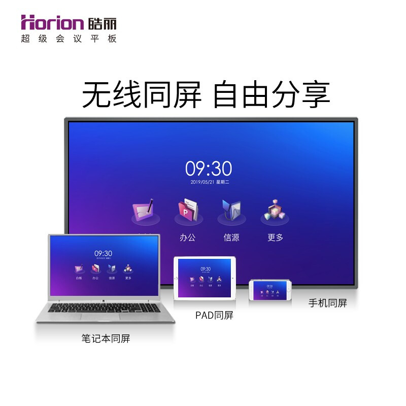 • 皓丽HorionE系列 会议平板55英寸4k高清 视频会议交互式电子白板触控一体机E55(智能笔+同屏器+HK50支架)