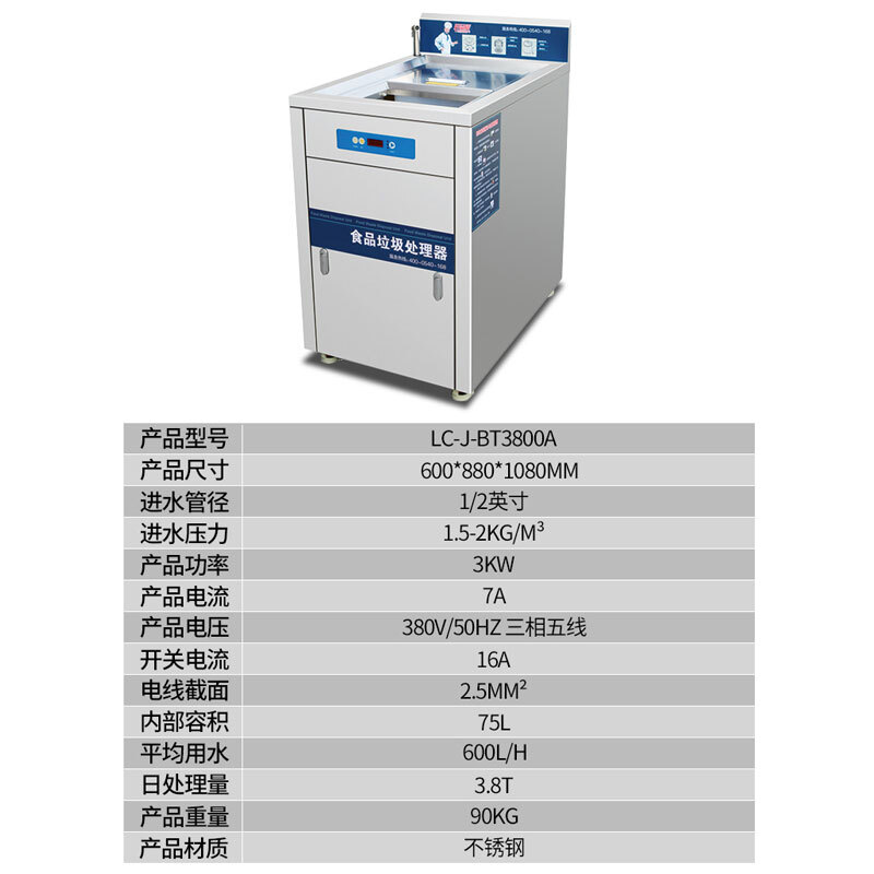 - 乐创 lecon 商用厨余垃圾处理器厨房家用食物粉碎机餐厨湿垃圾处理机 LC-J-BT3800A