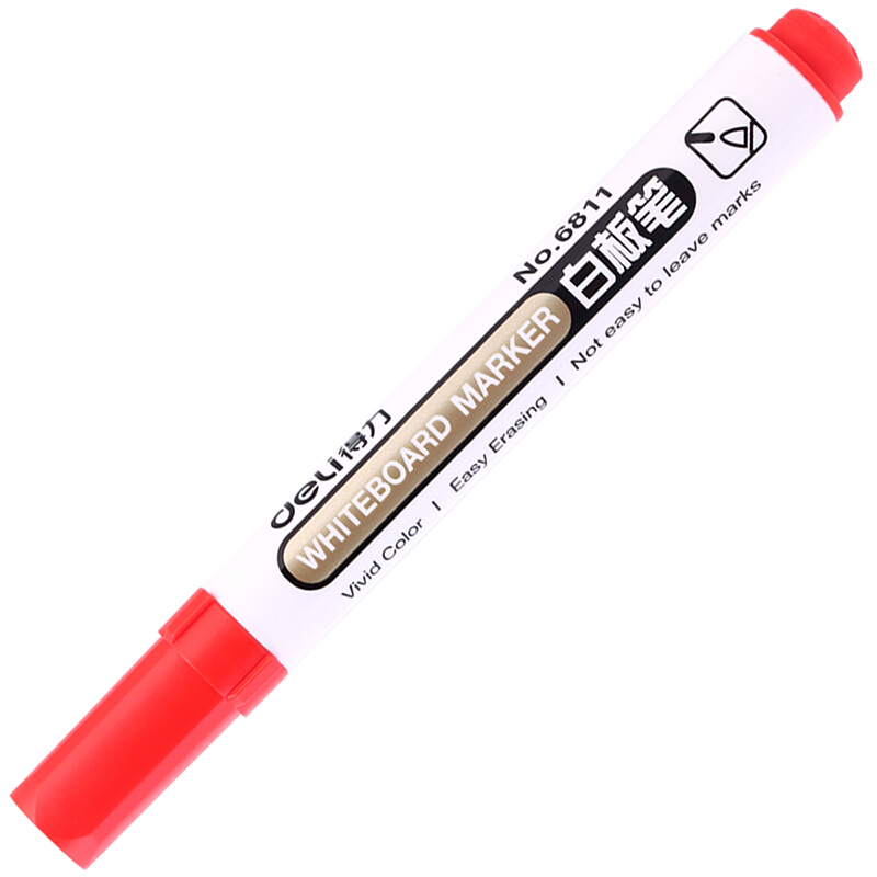 • 得力 6811 办公会议白板笔 可擦易擦红色 10支/盒