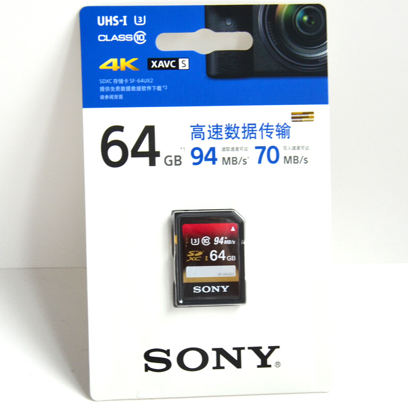 • 索尼(SONY) SD卡高速存储卡 闪存卡尼康佳能单反索尼微单相机内存卡 64G 94M/s 高速