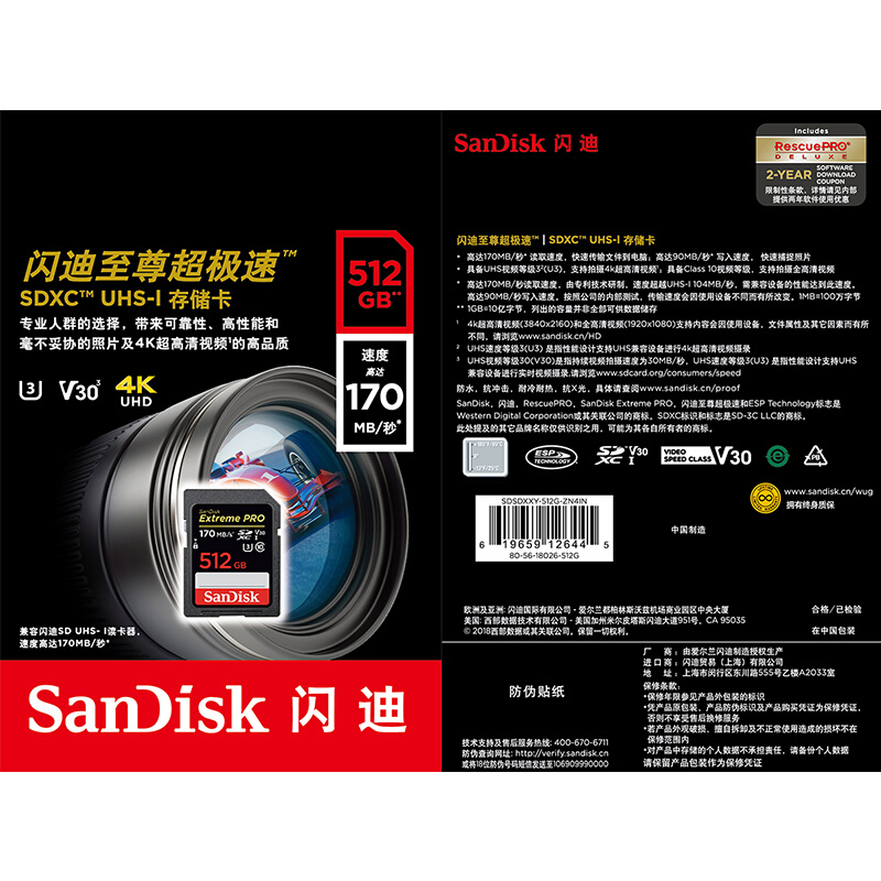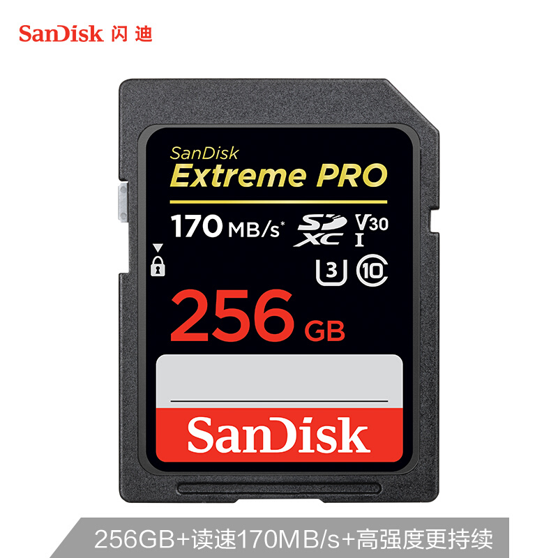 • 闪迪(SanDisk)256GB SD存储卡 U3 C10 V30 4K至尊超极速版数码相机内存卡 读速200MB/s 写速140MB/s