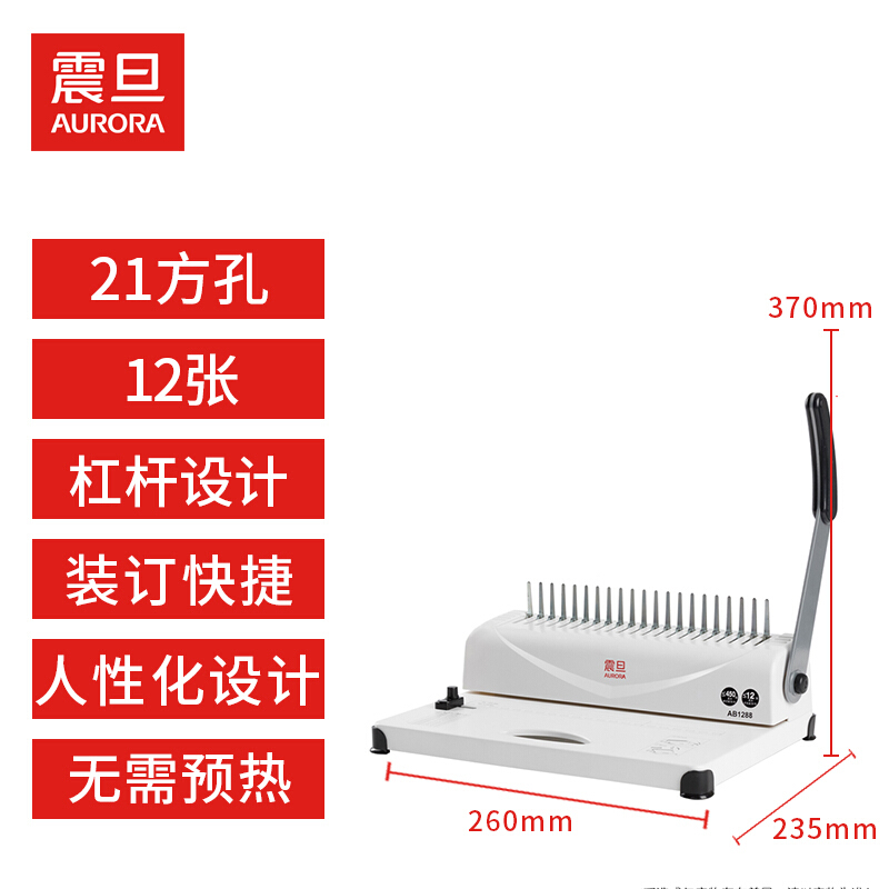 震旦AURORA胶圈 /夹条装订机 21孔文件打孔机 省力型 AB1288