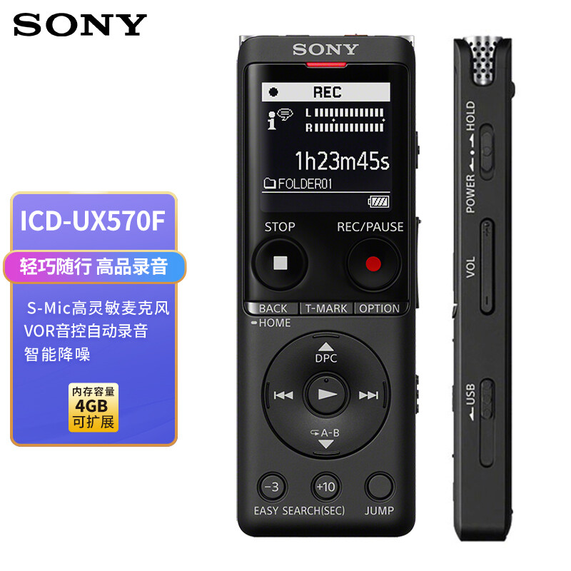 索尼(SONY)录音笔ICD-UX570F 4GB 黑色 智能降噪升级款 专业线性录音棒