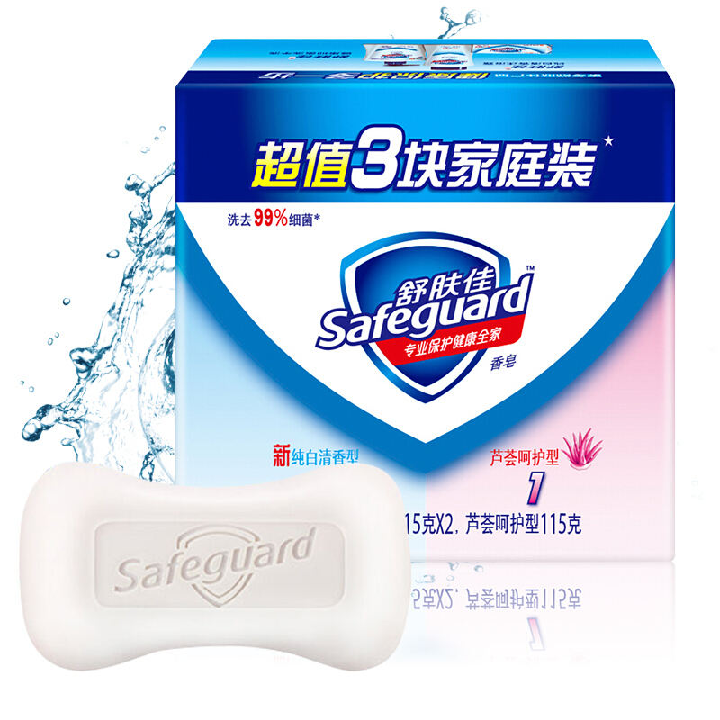 舒肤佳香皂混合三块促销装115gX3(纯白清香+柠檬清新+芦荟呵护)(温和洁净 新老装随机发货)