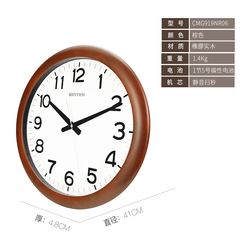 • 丽声 实木扫秒石英挂钟时尚简约创意挂表中式复古圆形时钟客厅卧室钟表41cm简约cmg919nr06D